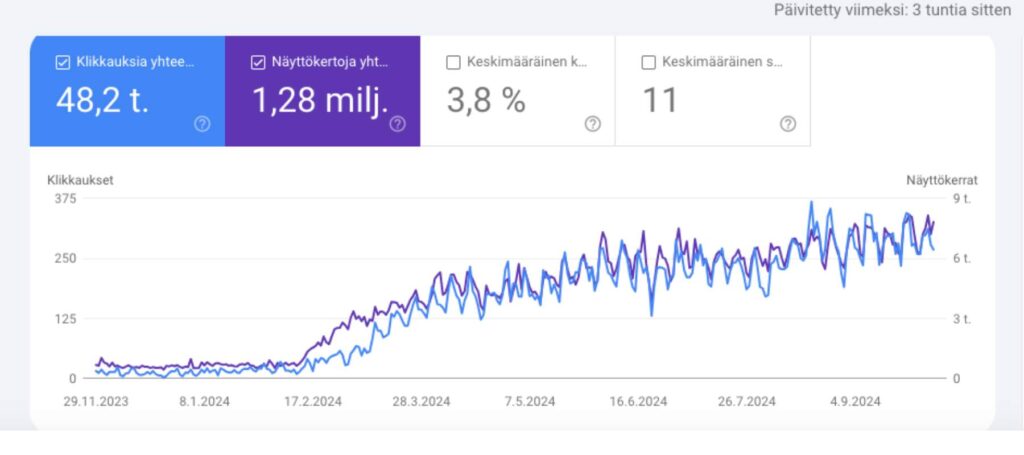 Hakukoneoptimoidaan ja julkaistaan SEO-tekstejä todella voimakkaalla aloituksella ja pidetään SEO tahti yllä koko ajan. Kasvu 500-2500%